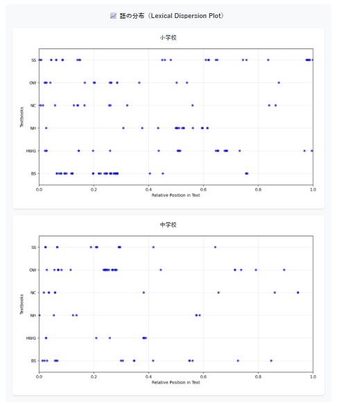 ●小学校および中学校の教科書のLexical Dispersion Plot