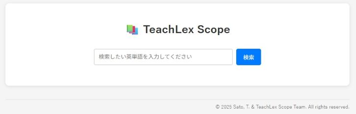 このアプリは、Teacher Talkを考える際や教材作成、テスト実施・採点時に「この単語は使っても良いのか?」の目安としてご利用いただけます。また、高校入試における語彙の使用状況確認にもお役立ていただけます。