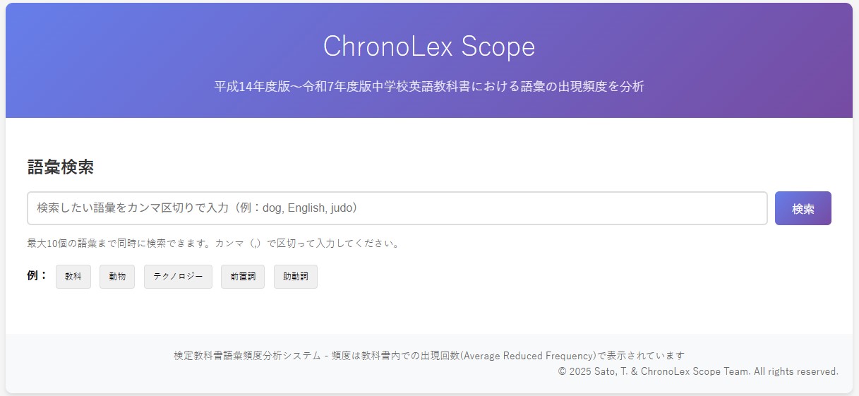 平成14年度版〜令和7年度版中学校英語教科書における語彙の出現頻度を分析するウェブアプリです。